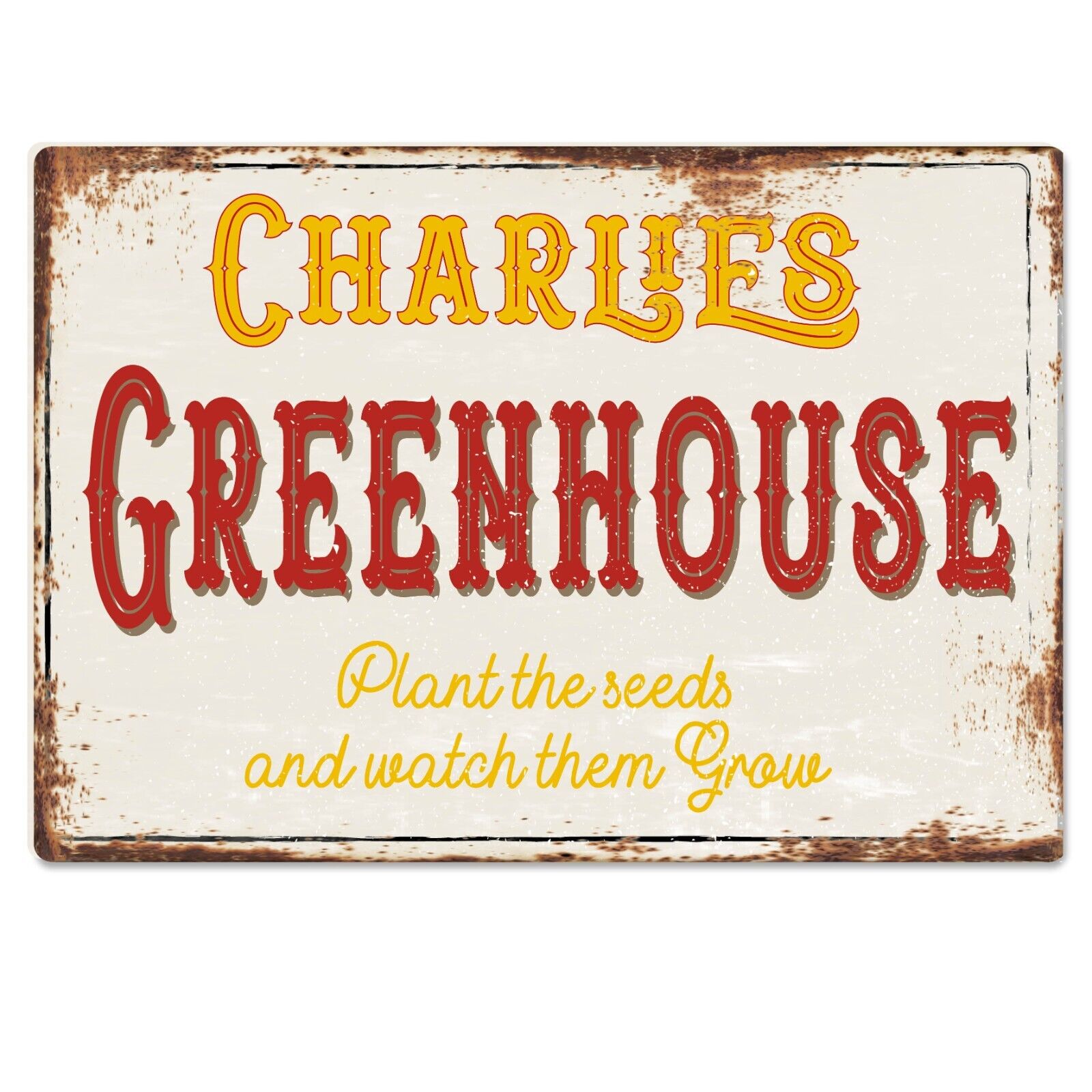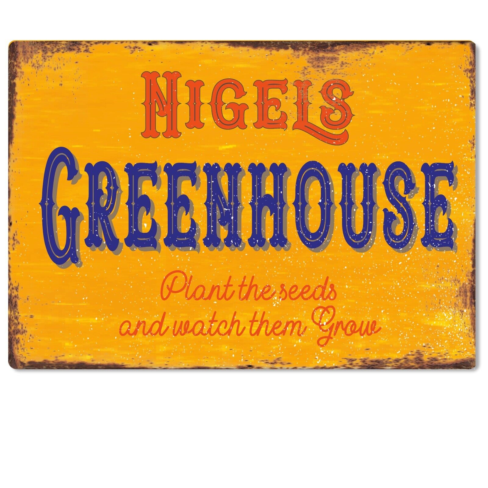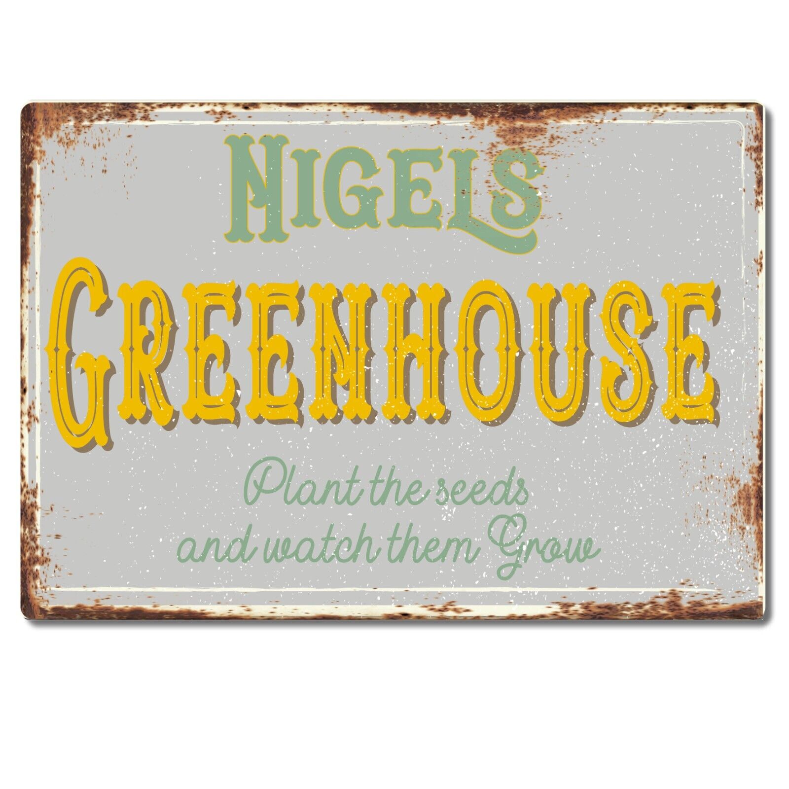 Personalised Greenhouse Metal Sign Plaque Vintage Garden Retro Shabby Type No Illustration