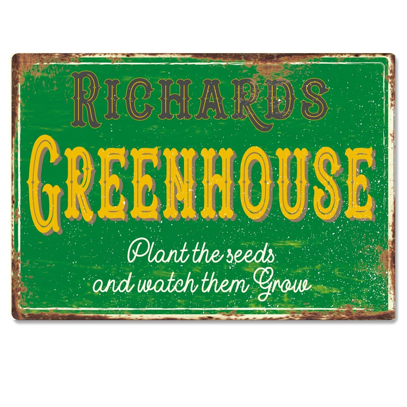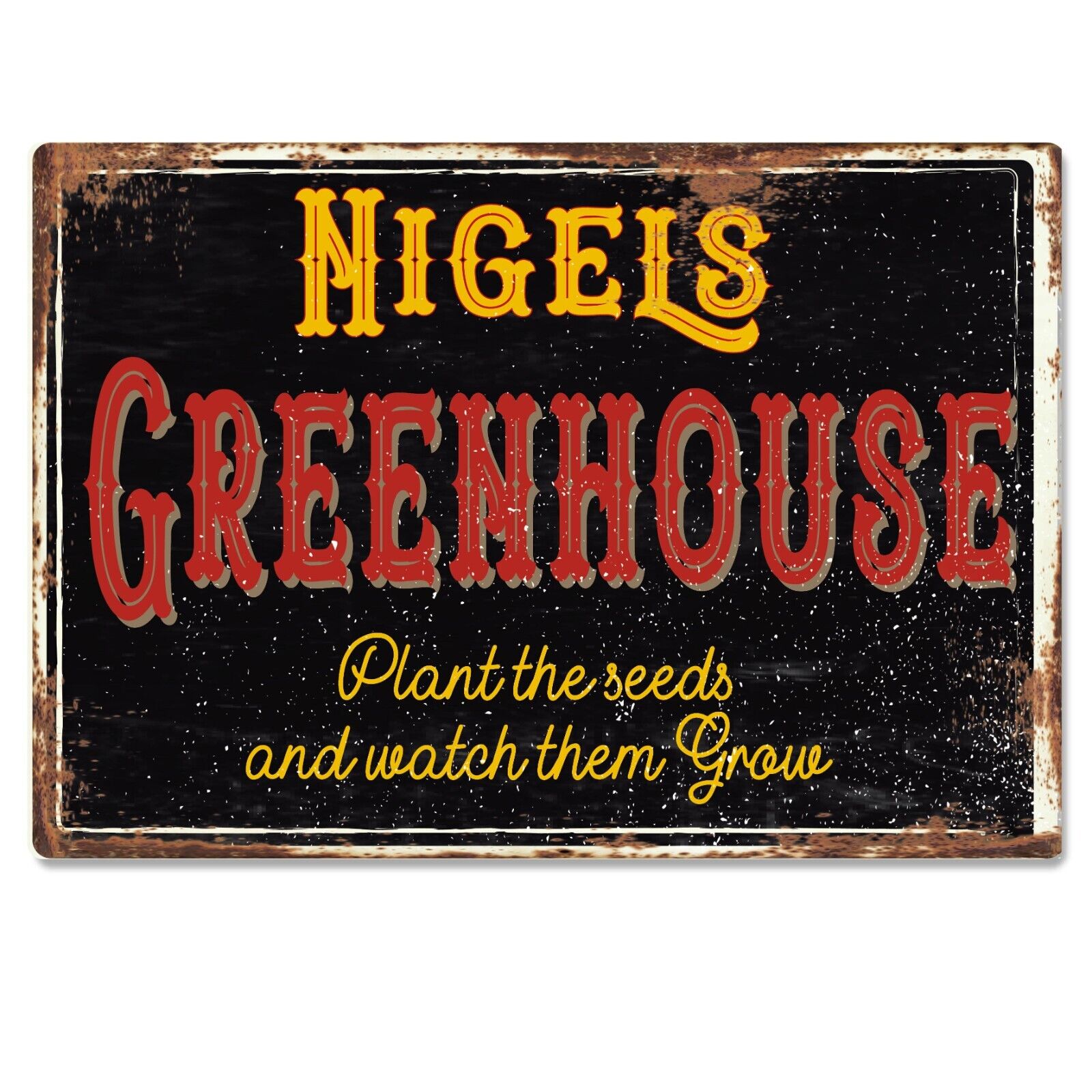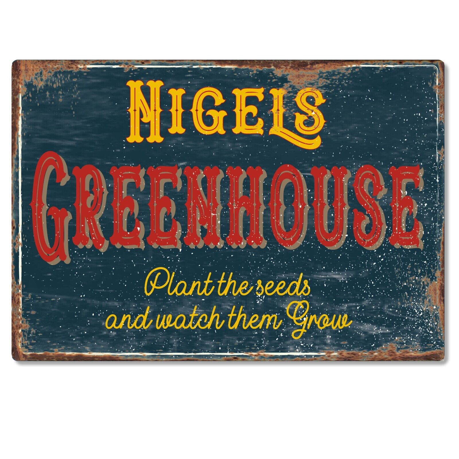 Personalised Greenhouse Metal Sign Plaque Vintage Garden Retro Shabby Type No Illustration